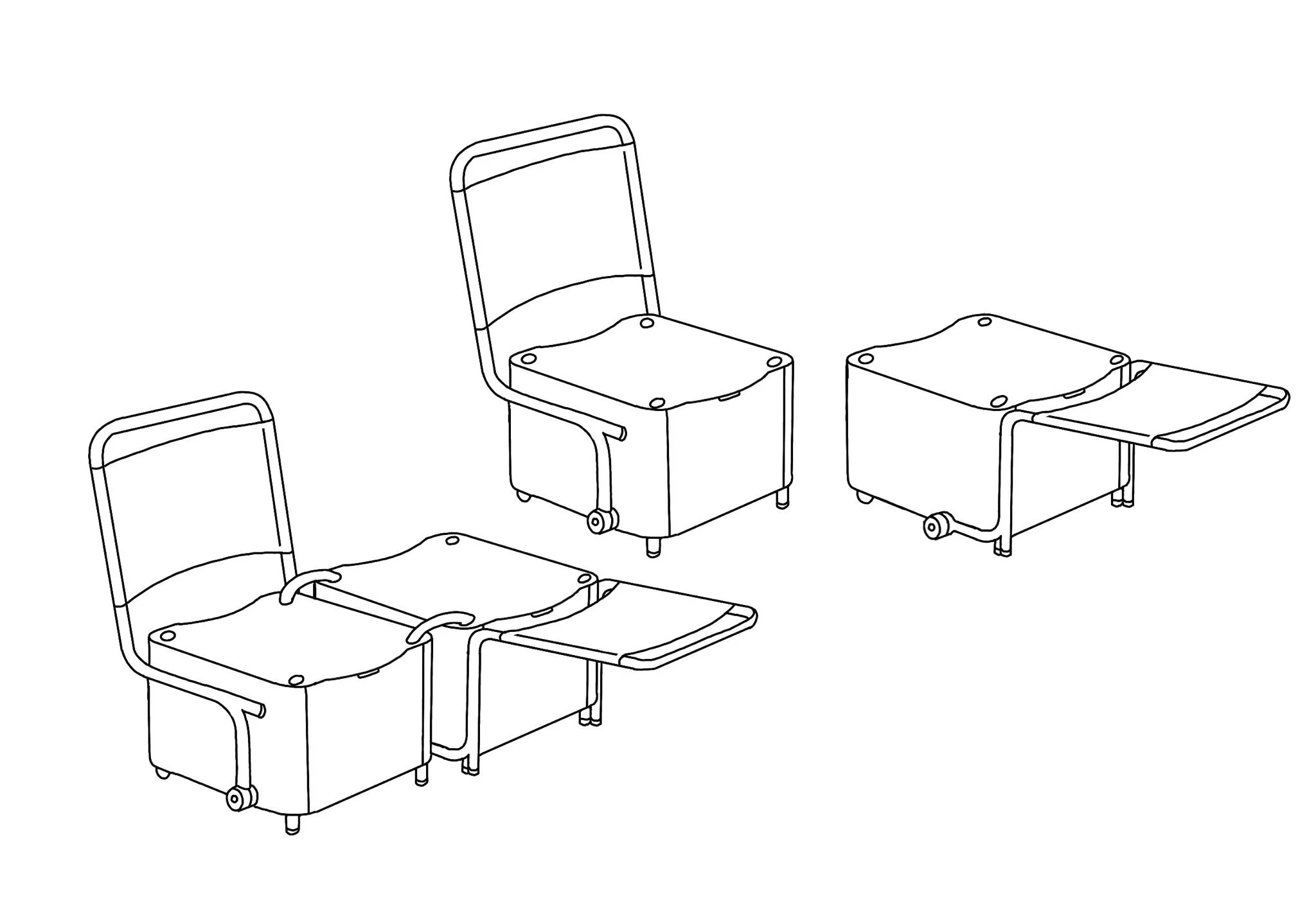 The robin chair was designed as a prototype to develop a new stool serving a multilocal purpose. Above all it is a humoristic study of movement needs, you can even use it to move away someone that has been sitting next to your desk for a little too long !